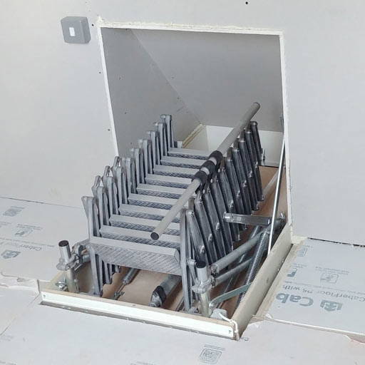 One of our regular customers, Steve of Artisan Loft Ladders asked if we could supply a luxury loft ladder including hatch for his client at their beautiful home in rural Cotswolds. The addition of a loft ladder formed part of a larger project to convert the empty loft area into a useful space including a new floor, plaster boarded walls and lighting. Steve’s customer wanted to store items in the loft that could be accessed regularly.