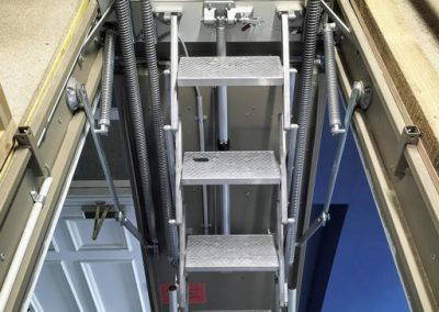 The electrically operated Supreme with a 30-minute fire-rated steel hatch was quickly identified as the best solution for this challenging project. The fire-rated electric loft ladder can achieve a height of 4m. It also features a high-strength concertina ladder assembled from cast aluminium components with a load-rating of 200kg per tread. Furthermore, the ladder is operated by a low-noise electric motor, featuring a battery back-up power supply and manual override. Finally, to achieve the 30-minute fire-protection, the ladder is packaged in a fire-resistant steel hatch box.